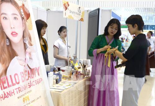 Các gian hàng dược phẩm, hóa mỹ phẩm, chăm sóc sắc đẹp là nơi thu hút khách hàng. Ảnh: Quốc Dũng – TTXVN