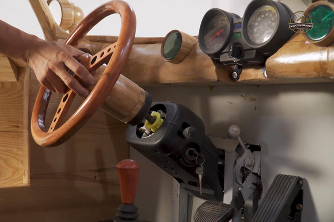 Bên dưới khung thân gỗ được chế tạo tỉ mỉ là hệ thống khung gầm thép với hệ thống treo và đánh lái như thật. Cung cấp năng lượng cho trang bị truyền động (một mô tơ điện) là ắc quy cho phép xe vận hành nhẹ nhàng không vấn đề.