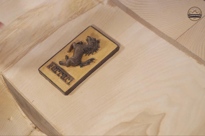 Sau khi đã hài lòng với khung gầm, Woodworking Art chuyển sang chế tác khung gỗ bên ngoài với từng chi tiết nhỏ nhất trên xe nguyên bản cũng được cân nhắc đến. Ta có thể thấy gương bên, gạt mưa cho tới cả logo ngựa chồm của Ferrari đều được phác thảo lại cực kỳ chính xác.