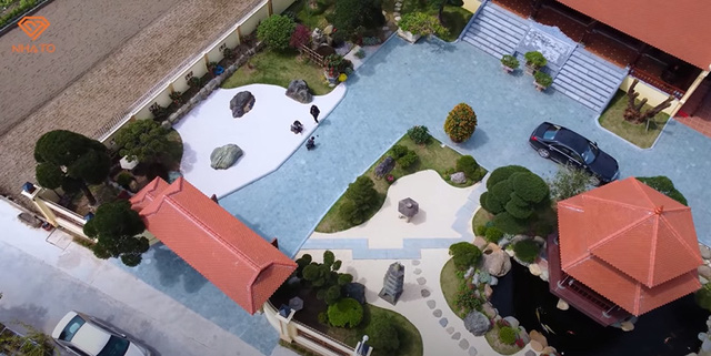 Ở đây, vườn Nhật được thiết kế đầy tỉ mỉ với sự tư vấn từ các nghệ nhân Nhật Bản, cùng với đá nguyên khối, tháp đá, … đều hoàn toàn từ Nhật, làm toát lên không gian đậm màu sắc của đất nước mặt trời mọc. Không chỉ tạo hình ấn tượng mà những đồ trang trí ở đây cũng rất giá trị, ví dụ như những chiếc đèn đã có tuổi thọ lên tới hơn 100 năm mà theo chia sẻ của chủ nhà, chỉ có người thân quen bên Nhật mới chịu bán cho bác.
