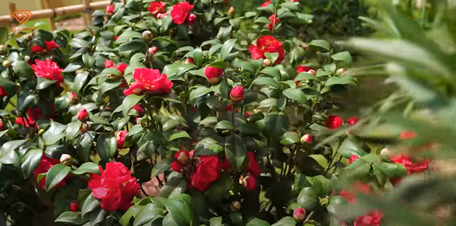 Góp phần không nhỏ vào bức tranh Nhật Bản của khu vườn chính là các loài cây quen thuộc không thể thiếu ở bất cứ vườn Nhật nào như tùng, đỗ quyên, hoa trà, thông… Đặc biệt là hoa anh đào – loài hoa chỉ cần nhắc tới đã gợi ngay cho khách suy nghĩ về đất nước mặt trời mọc.