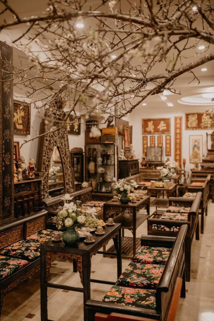 Phần nội thất toàn gỗ quý và được bày trí theo phong cách hoài cổ. (Ảnh: Facebook Xuân Hinh)